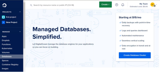 DigitalOcean也是最流行的基础设施即服务之一,它还提供数据库即服务。因此,一旦您将数据库托管在该平台上,不必担心架构或配置。