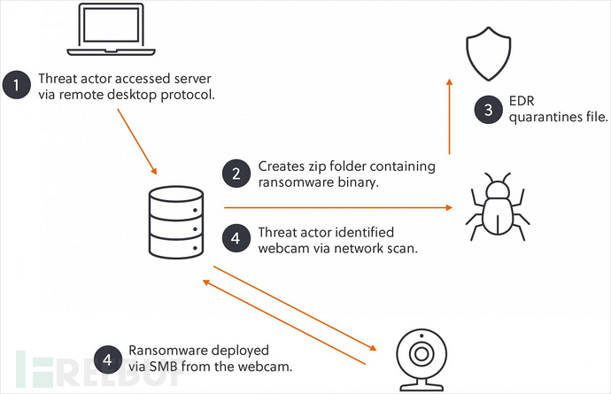 S-RM向BleepingComputer证实,攻击者利用网络摄像头的Linux操作系统挂载了公司其他设备的Windows SMB网络共享,并在摄像头上启动了Linux加密器,通过SMB对网络共享进行加密,成功绕过了网络中的b2b供应网EDR软件。