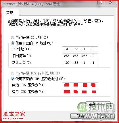 IPv4的设置如下图,IP地址:192.168.1.2(要设这个哦,因为机器的IP地址要和后面的网关在一个IP段上),子网掩码自动分配3个255一个0,地址是:192.168.1.1(这是默认的),