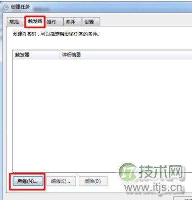 4、统电同样在创建任务面板中我们点击【触发器】-“新建”按钮。脑中闹钟