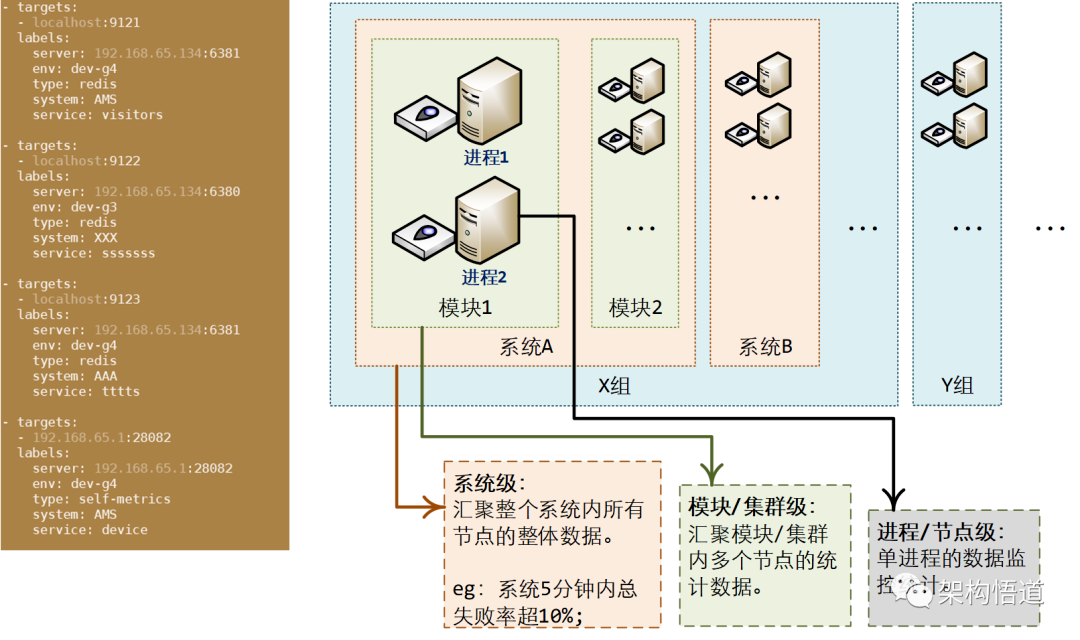 此处规划是在prometheus拉取探针服务的地方进行配置追加固定分组tag信息,而不是由各个探针的指标项中自己上报,主要也是从平台统一控制维度进行考量。
