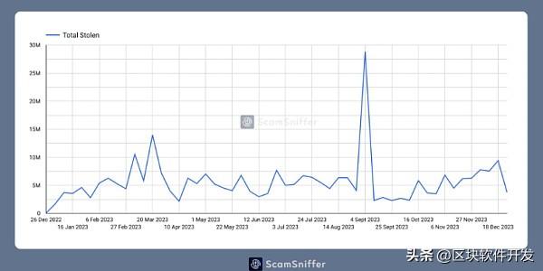 在过去的年加2023年,Scam Sniffer监控到这些钱包盗贼(Wallet Drainers)从约 32.4万名受害者那里窃取了近 2.95 亿美元的密钓资产。