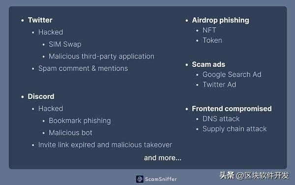 谷歌搜索广告推特广告尽管黑客攻击具有广泛的影响,但社区通常会迅速做出反应,通常在 10 到 50 分钟内。然而,空投、自然流量、付费广告和接管的 Discord 链接却不太引人注目。