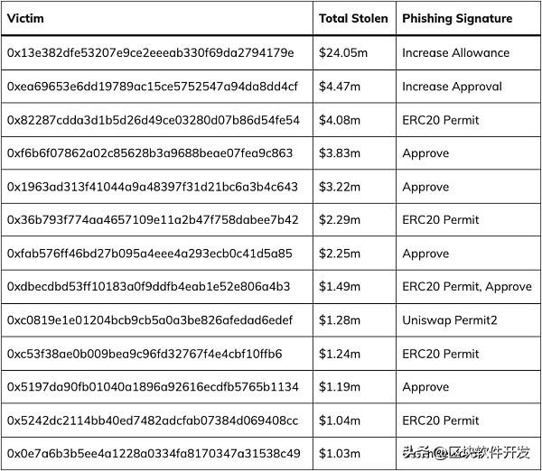 以上是受盗窃影响最严重的受害者,累计损失达5000万美元。源码下载可以看出,主要原因是签署Permit、Permit2、Approve、Increase Allowance等钓鱼签名。