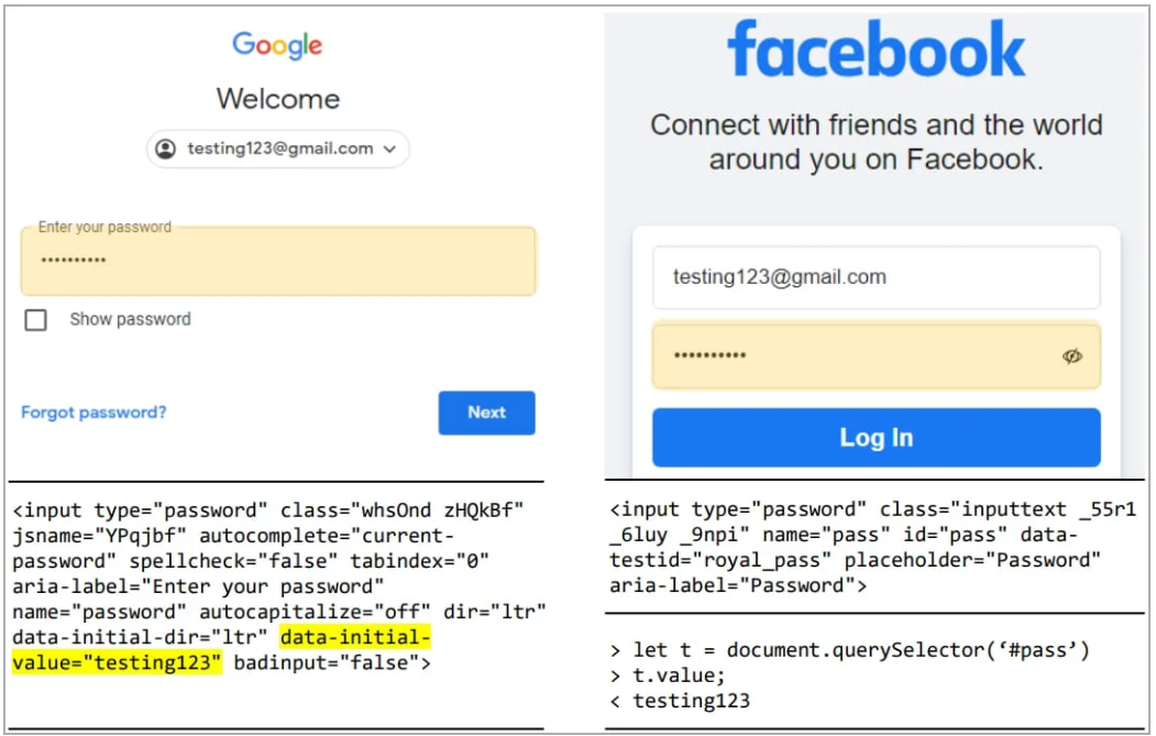 随后的实验数据发现,服务器托管前1万个网站中有1100个在HTML DOM中明文保存了用户密码。其他7300个网站也易受到DOM API访问和用户数据直接提取攻击。