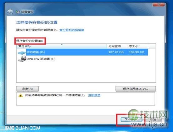 5. 选择保存备份的备份位置,然后单击”下一步”;