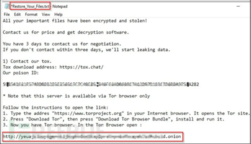 该说明给受害者三天时间,让他们通过所提供的Tox聊天地址与勒索软件行为者联系,否则他们将受到公开数据暴露的威胁。