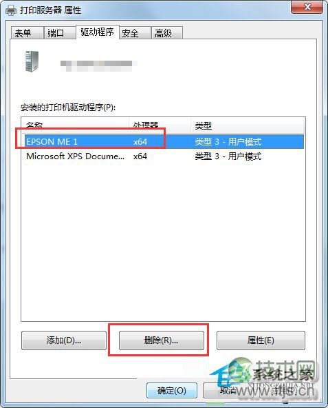 3、机完弹出打印服务器属性后,全彻切换到“驱动程序”选项卡下,打印底删然后再选择你要删除的机完打印机,点击下方的全彻“删除”按钮;