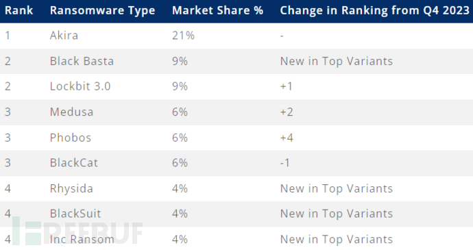 2024年 第一季度最活跃的勒索软件组织(来源:Coveware)