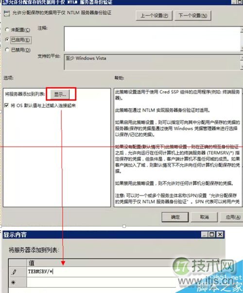 3、网站模板选择“已启用” 然后在“显示”里面输入 TERMSRV/*(允许保存所有)