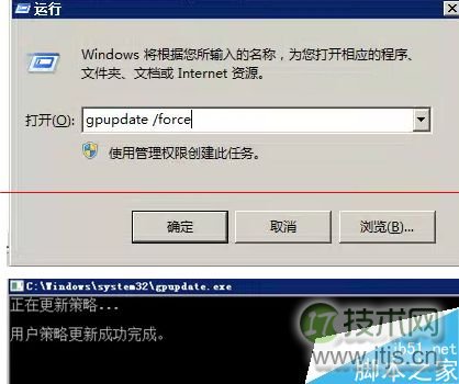 4、面提刷新组策略,让设置生效。开始菜单--- 运行--- 输入 gpupdate /force 强制刷新,如下图设置