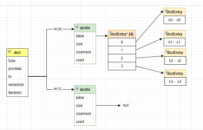 我们回顾一下之前讲到的Redis的字典结构,示意图如下: