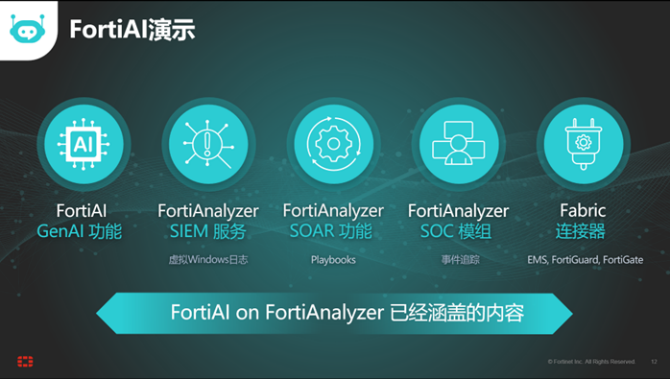 Fortinet的AI安全解决方案,经过多次迭代和打磨,已经进入第六代。王涛表示,Fortinet的AI产品能够快速提取全球安全事件中的威胁情报,并融合到防火墙、邮件网关等产品中,帮助安全分析师更高效地应对网络攻击。特别是在威胁情报的聚合、行为分析和基线识别等方面,AI技术大大提升了安全运营的效率,减少人工分析师的依赖。此外,Fortinet的AI产品不仅提升了安全防护的精度,还能够减少误报和漏扫,增强了对复杂攻击的识别能力。