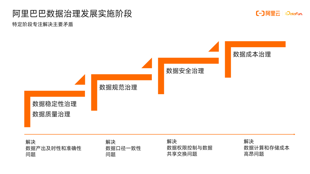 阿里巴巴数据治理分为四个阶段,也是伴随着数据平台的发展阶段。