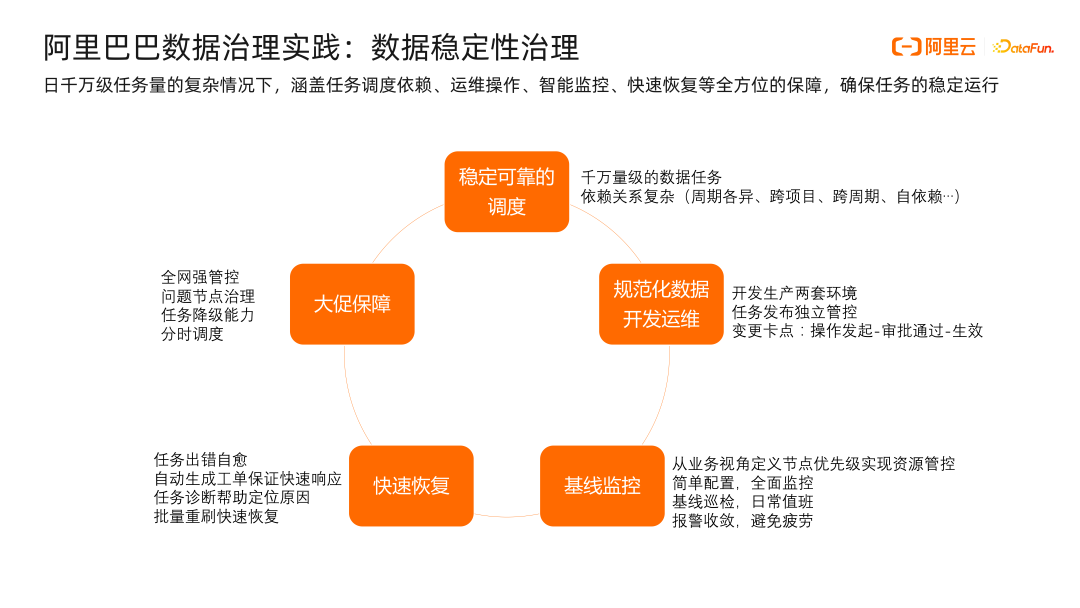第一阶段,也是首要要保障的问题,即数据稳定性。阿里巴巴通过以下几个方面来保障数据生产的稳定性。