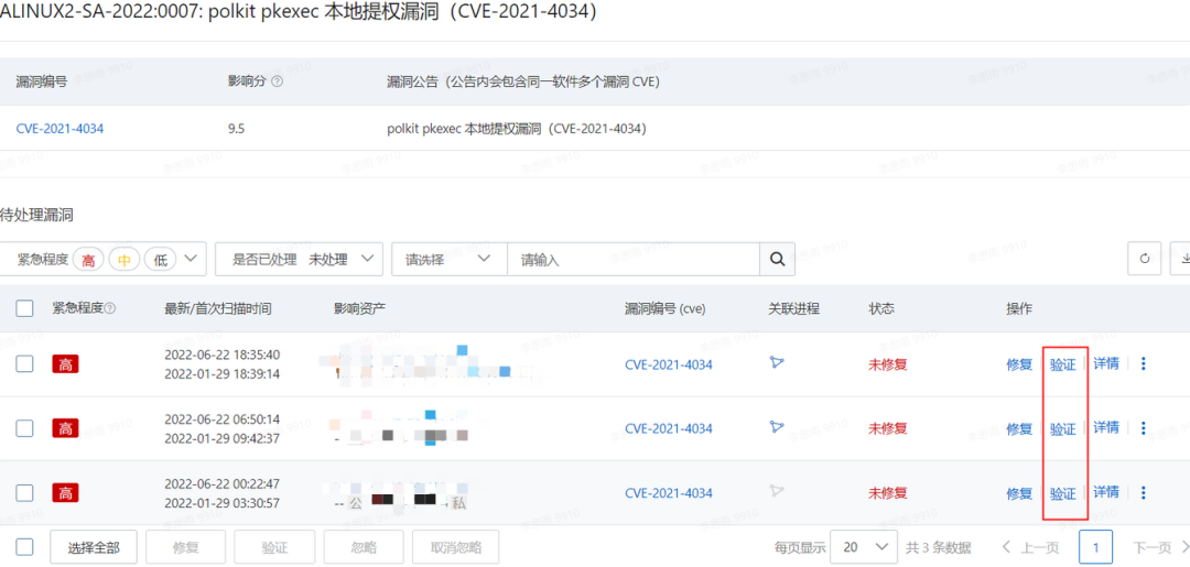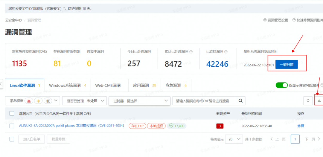 (2)开始修复使用阿里云安全中心的一键扫描功能: