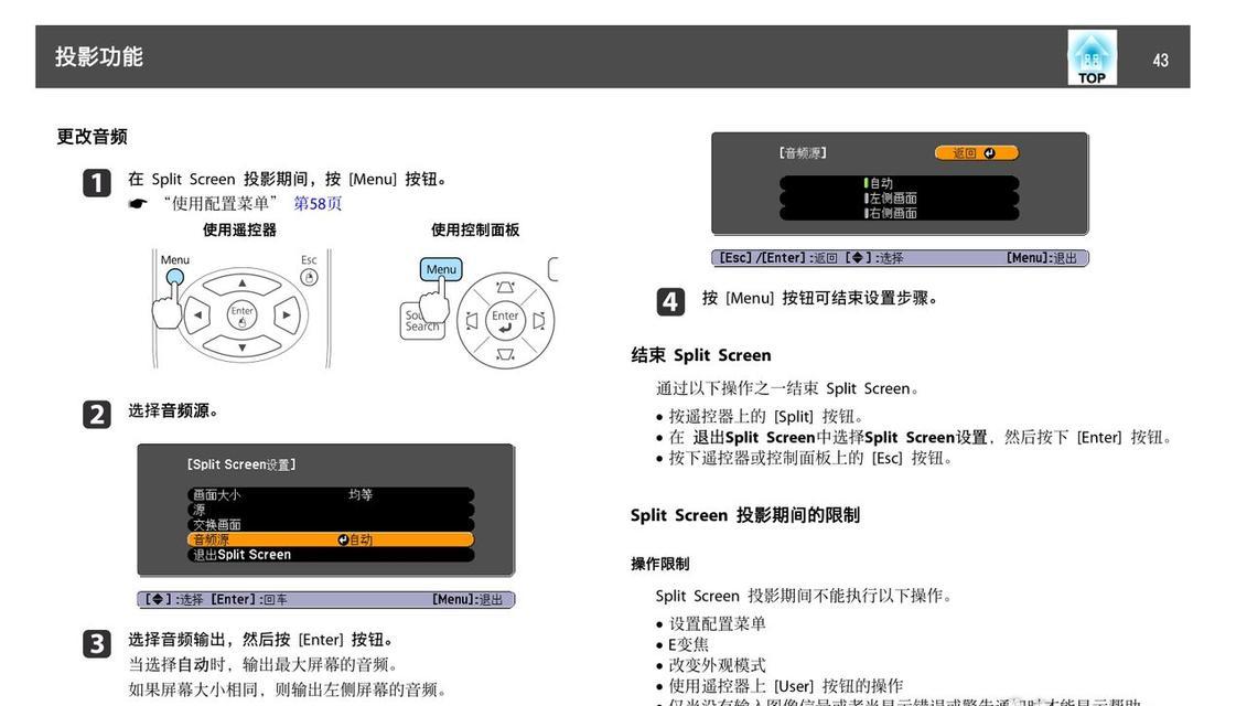 除了基本的无线投屏功能,爱普生EB投影仪还具备许多其他功能和应用,例如投影纠正、投影画面旋转等。我们可以通过投影仪自带的操作菜单或遥控器进行设置和调整。