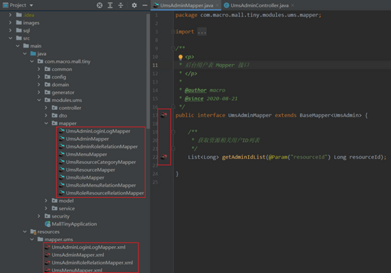 安装完成后我们会发现所有的Mapper接口和mapper.xml文件都变成了MyBatis的小鸟图标。