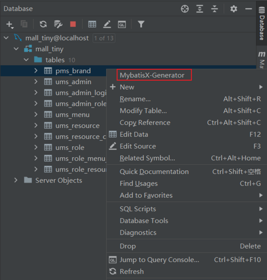还记得之前在mall-tiny项目中我们手写的代码生成器么,MyBatisX直接整了个带图形化界面的,下面我们来体验下。