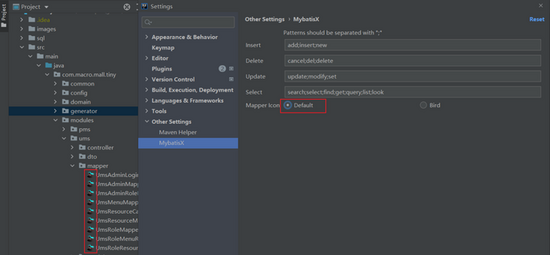 如果你不想Mapper接口和mapper.xml文件都变成小鸟图标的话,可以做在MyBatisX的设置中进行修改。b2b供应网