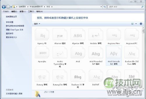 打开“字体”文件夹,就会看到系统自带的大量字体,我们可以根据自己的需求选择性删除从不使用的字体,释放磁盘空间,得到更多的空闲系统资源,以此来为电脑“减负”,加快电脑的运行。
