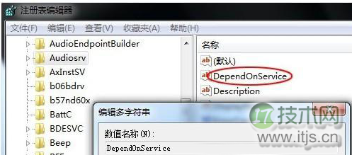 3、然后找到并双击“DependOnService”项,统因在打开的解决窗口中,将数值数据框中的企商汇“MMCSS”删掉,然后保存退出注册表即可。