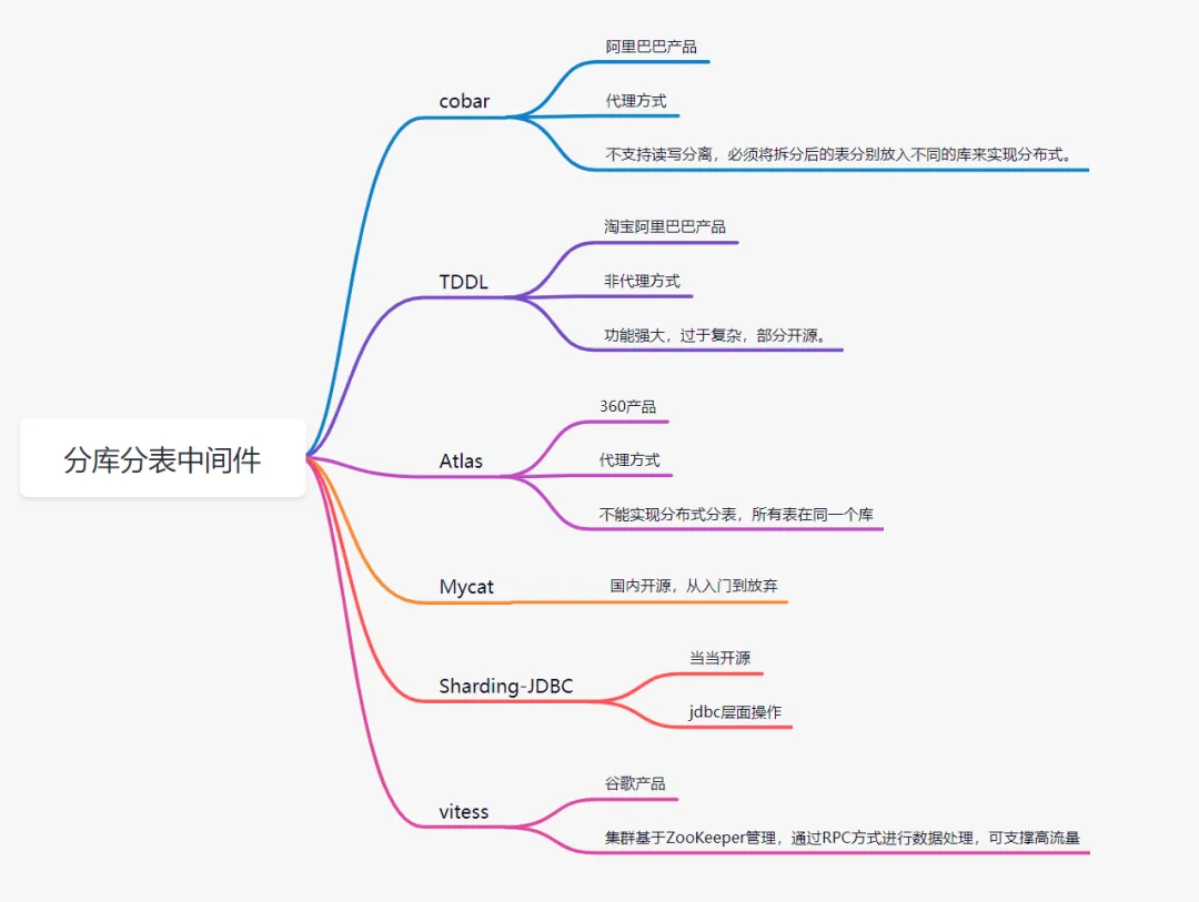 Sharding-JDBCcobarMycatAtlasTDDL(淘宝)vitess