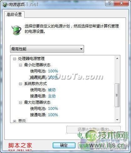 在平衡模式的默认设置下,显卡的电源计划是“平衡”;接通电源后处理器散热方式为“主动”,最小处理器状态为“5%”,最大处理器状态为“100%”;使用电池时的屏幕亮度为40%,接通电源后为100%。也就是说,在平衡模式下只有电脑处于活动状态时才提供完全性能,当一段时间内都处于非活动状态时,则会自动进入节电状态。对于大多数人来说,这是最合理的电源计划。