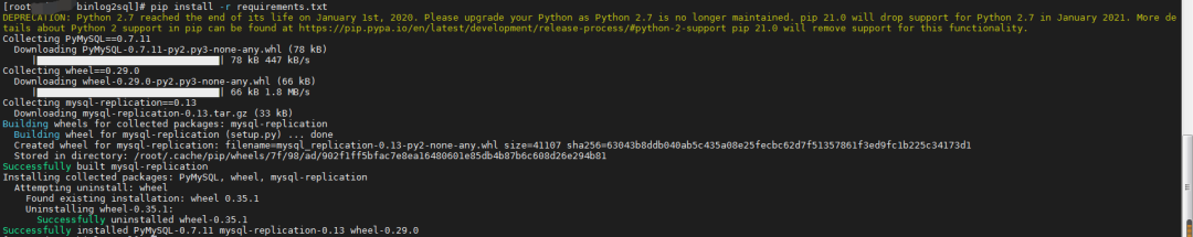 复制git clone https://github.com/danfengcao/binlog2sql.git && cd binlog2sql pip install -r requirements.txt1.2.