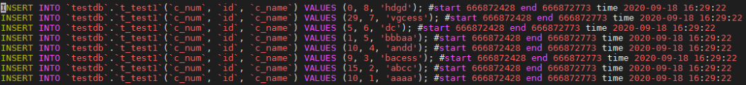 复制python binlog2sql.py --flashback -h 192.168.56.128 -udata_rec -pxxxxxxxx -d testdb -t t_test1 --start-file=mysql-bin.000003 --start-datetime=2020-09-18 16:29:08 --stop-datetime=2020-09-18 16:30:00 >/tmp/rec.sql1.结果内容如下: