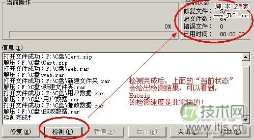 有时候我们下载了大量的压缩文件,但不知道里面哪些被损坏,这个时候Haozip提供的预检测功能就派上用场了。