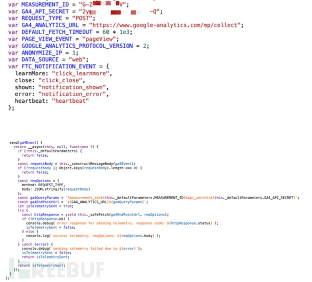 (显示硬编码Google Analytics 4 API密钥的代码片段 | 图片来源:赛门铁克)