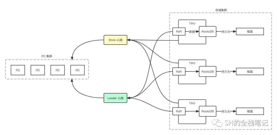 Raft Group 的 Leader ReplicaTiKV 节点本身PD 通过心跳来收集数据,更新维护整个集群的元数据,并且在心跳返回时,将对应的「调度指令」返回。
