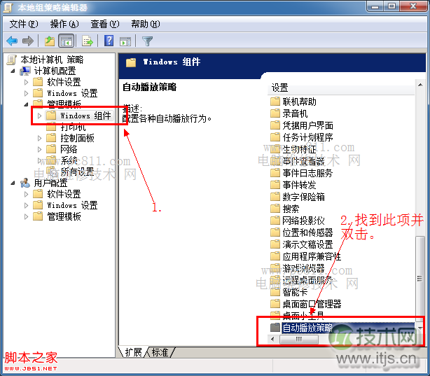 第2步:在打开的闭移播放组策略编辑器中的左侧找到并打开“计算机配置>>管理模板>>Windows组件”,并在右侧找到并双击“自动播放策略”,动驱动器在打开的使用关闭自动播放中找到并双击“关闭自动播放”此项。