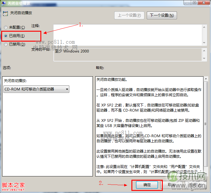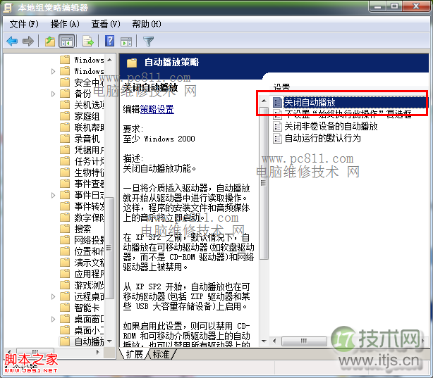 有关组策略关闭的使用方法,本站以前在Windows XP及其他系统上出过类似的组策自动教程,大家可查阅禁止电脑自动播放