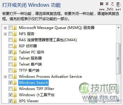 在随后打开的对话框中,找到并勾选“Windows Serach”(如图3):