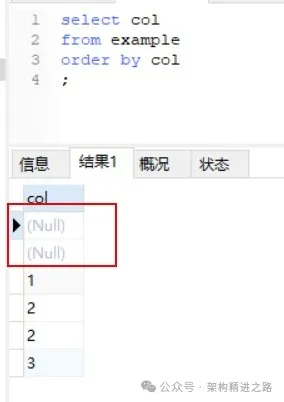 对于 order by 来说,升序时 NULL 会排在最前。这是因为在排序过程中,数据库系统将 NULL 视为一个特殊的值,按照特定的规则进行排序。
