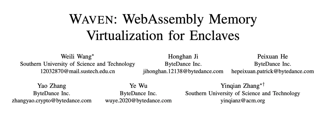 本次入选的集团机密研究论文聚焦于为运行在可信执行环境(TEE)内的WebAssembly(Wasm)运行时设计一套适合机密计算的内存管理方案,以实现机密计算环境中Wasm模块之间的安全高效数据共享,并支持细粒度的研究内存访问控制。