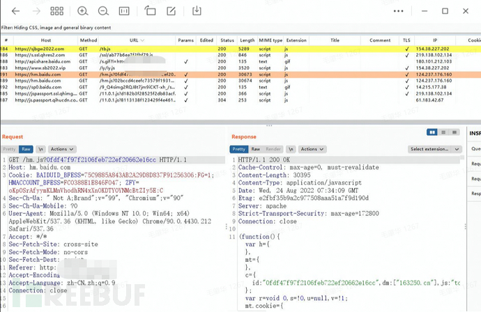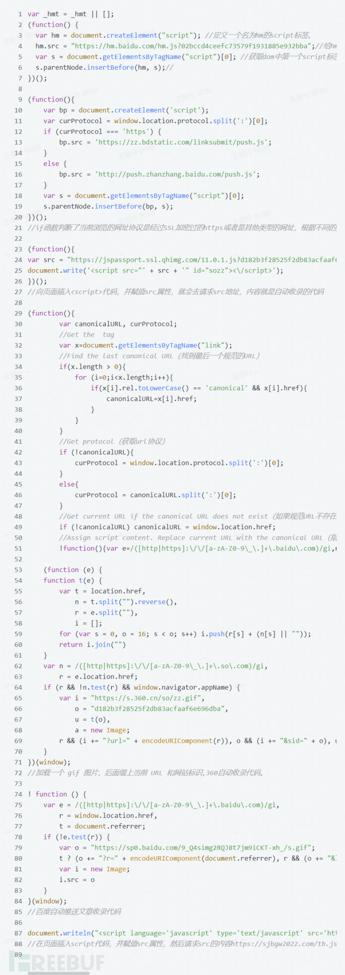 新插入的JavaScript代码如下图所示。解码后发现是一段引用外部js的代码。企商汇