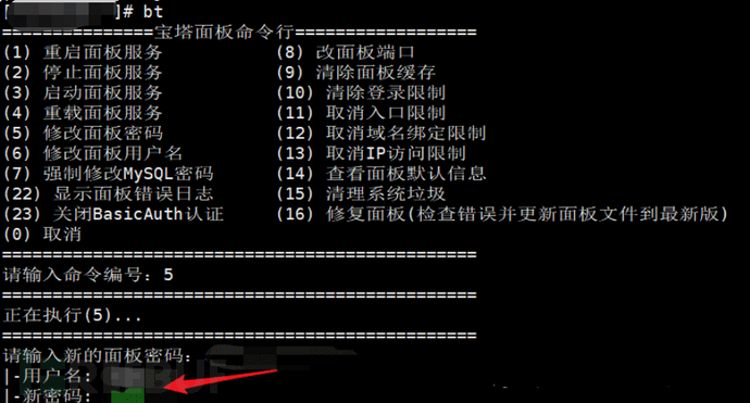 前面说到宝塔密码已被修改,那么为了登入宝塔,我们直接修改宝塔密码。在服务器上输入bt命令进行修改。