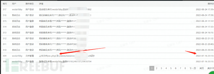 登入宝塔后台后,我们发现最后一次登录时间为7月16日,攻击者上传了一个名为zxc.php的木马文件。