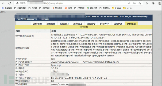 玩过宝塔的朋友都知道,宝塔后台路径未知的情况下,通过宝塔后台GetShell基本上是不可能的。此外,香港云服务器客户设置的BT面板的用户名也有些复杂,所以推断攻击者从宝塔下手的可能性很小(这里埋个坑,前面提到客户宝塔后台密码被修改的情况,后面会说到原因)。