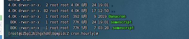 第一波攻击者可能是挖矿组织,在5月7日大概率利用SSH弱口令进入服务器上传挖矿程序somescript,且做了对应的维持手段。