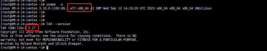 复制[root@VM-4-14-centos ~]# uname -a Linux VM-4-14-centos 3.10.0-1160.99.1.el7.x86_64 #1 SMP Wed Sep 13 14:19:20 UTC 2023 x86_64 x86_64 x86_64 GNU/Linux [root@VM-4-14-centos ~]# ldd --version ldd (GNU libc) 2.17 Copyright (C) 2012 Free Software Foundation,备份 Inc. This is free software; see the source for copying conditions. There is NO warranty; not even for MERCHANTABILITY or FITNESS FOR A PARTICULAR PURPOSE. Written by Roland McGrath and Ulrich Drepper.1.2.3.4.5.6.7.8.