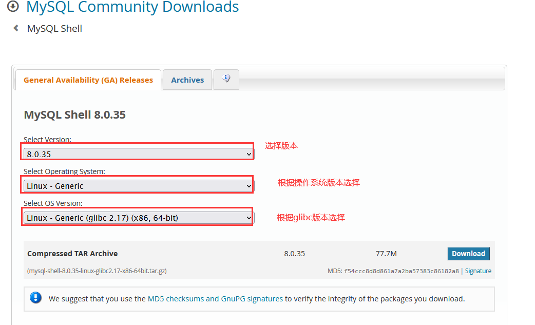 需要根据操作系统类型、轻松版本及glibc版本选择对应的搞定文件下载,例如: