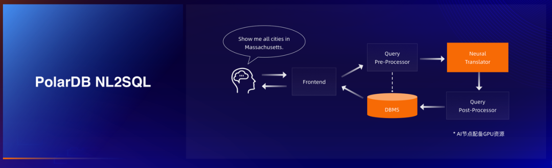本次大会智能化上还有个小亮点,通过一个小朋友带来的联机互动,演示与数据库通过自然语言交互的使用体验。虽然来略显简单,但其未来发展潜力非常大。其核心正式利用了当今大火的大模型技术。