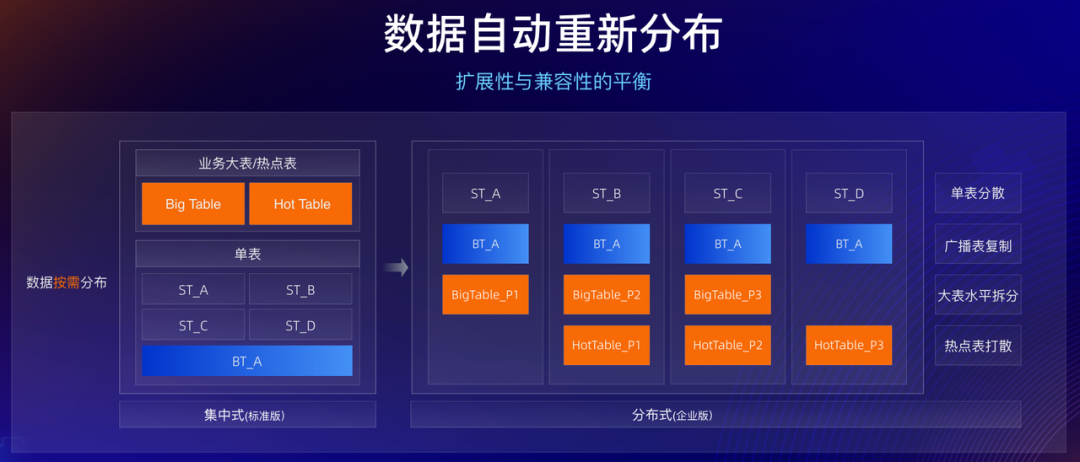 二是兼容性,即使用分布式是否能做到业务无感,这也是阻碍分布式数据库推广的核心问题,很多用户会担心分布式下很多使用难点。PolarDB 给出的答案是“自动分片与扩展资源平衡”,通过灵活分片调整方式打消用户对使用分片的恐惧心理。