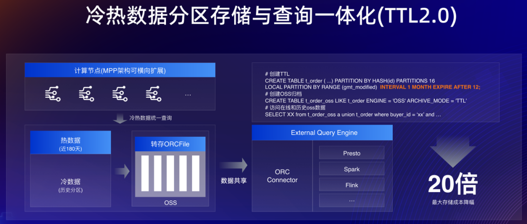 三是成本,即分布式下面临的海量数据管理与多工作负载可能带来的成本提高。PolarDB 给出的答案是“冷热分离与查询事务一体化”来解决。