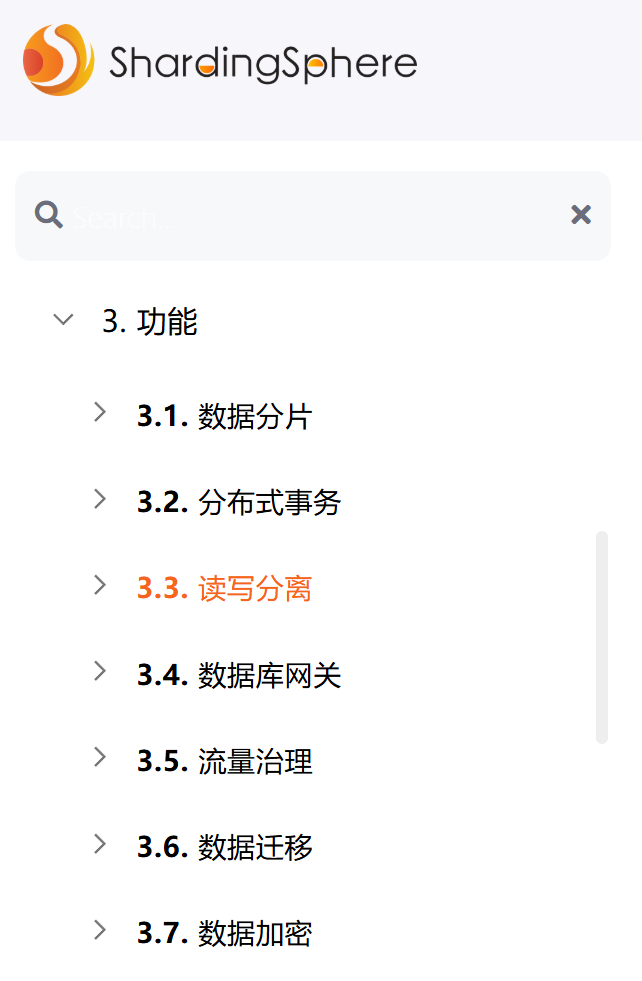从 Apache ShardingSphere 官网也可以看出读写分离是实现其提供的主要功能之一: