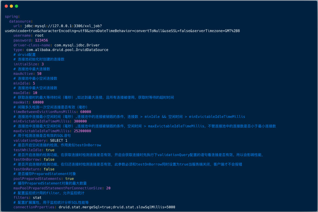 下图展示了 Druid 数据源配置样例: